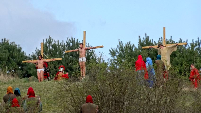 One of the most famous Passion Plays that is still performed takes place in the German village of Oberammergau. They do this to say 'Thank You' to God because he saved the village from the black death in 1633. These Passion Plays are held every ten years. The whole village takes part and the whole play lasts eight hours! The performances go on for several months. You can find out more about the plays at: www.passionplay-oberammergau.com