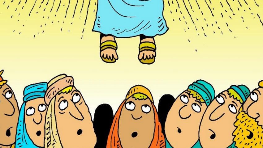 40 days after Jesus rose from the dead, he got his followers together and took them out to Bethany. He prayed for them and while he was doing so, he was carried back up into Heaven. A shining cloud covered Jesus, but suddenly two men dressed in white shining clothes stood next to Jesus and said "Why are you looking into the sky? Jesus who you saw going into heaven will return the same way!"